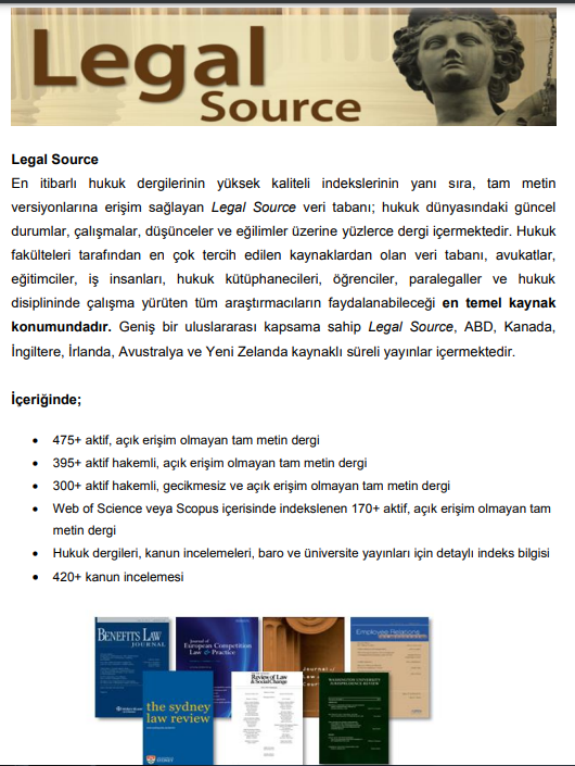 Legal Source Veritabanı 1 Haziran 2023 Tarihine Kadar Üniversitemiz Deneme Erişimine Açılmıştır.