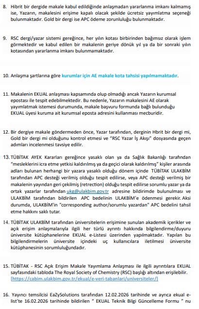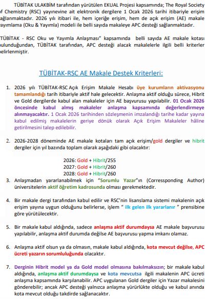 TÜBİTAK – The Royal Society of Chemistry (RSC) Açık Erişim Makale Yayımlama Anlaşması