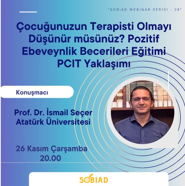 Sobiad Atıf Dizini tarafından düzenlenen Sobiad Akademi Webinar Serisi-28'de Sayın Prof. Dr. İsmail Seçer'i misafir edip ''Çocuğunuzun Terapisti Olmayı Düşünür müsünüz? Pozitif Ebeveynlik Becerileri Eğitimi PCIT Yaklaşımı'' üzerinde konuşacağız.